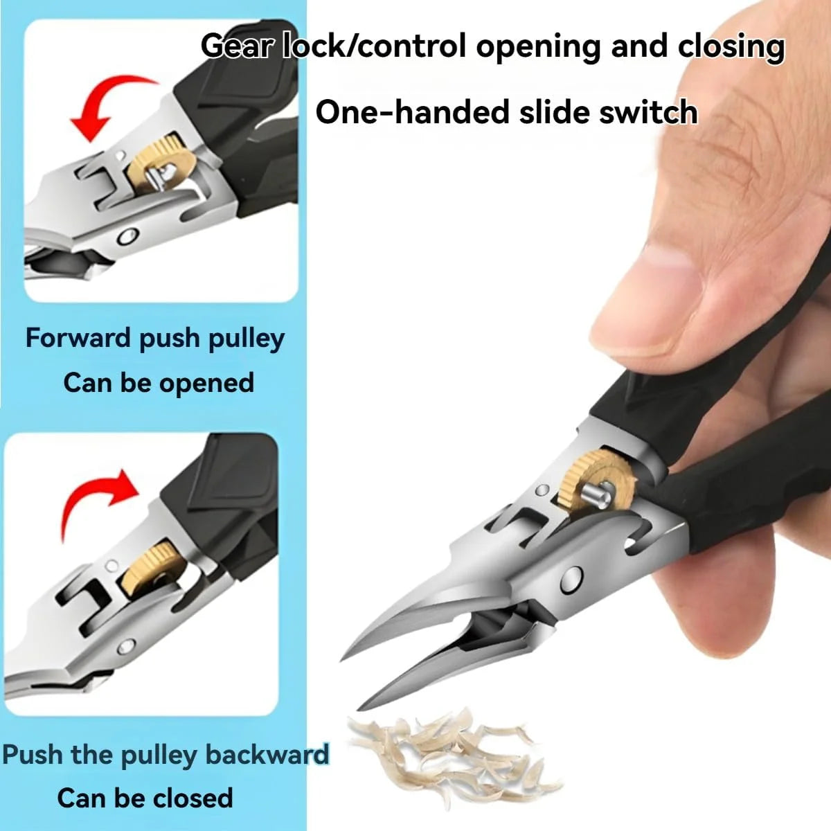 Precisely shaped curved blades that safely and easily trim thick, hard, and ingrown nails, ensuring clean and smooth cuts every time.