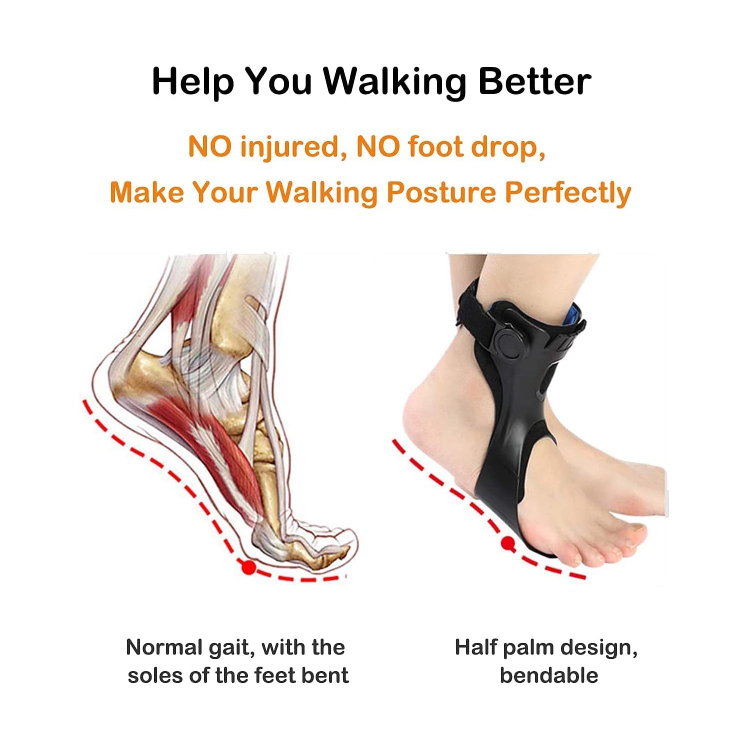 This upgraded medical ankle-foot orthosis is designed specifically for patients with hemiplegia, stroke, and conditions like ankle sprains, fractures, multiple sclerosis, stroke foot, and drop foot. Featuring an inflatable airbag, it helps patients walk more easily and comfortably by stabilizing the foot and assisting in various stages of the gait cycle, promoting better walking ability.