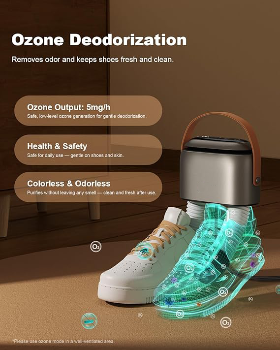 By removing dampness quickly, the dryer helps prevent the growth of odor-causing bacteria and mildew, keeping your shoes fresh and hygienic.